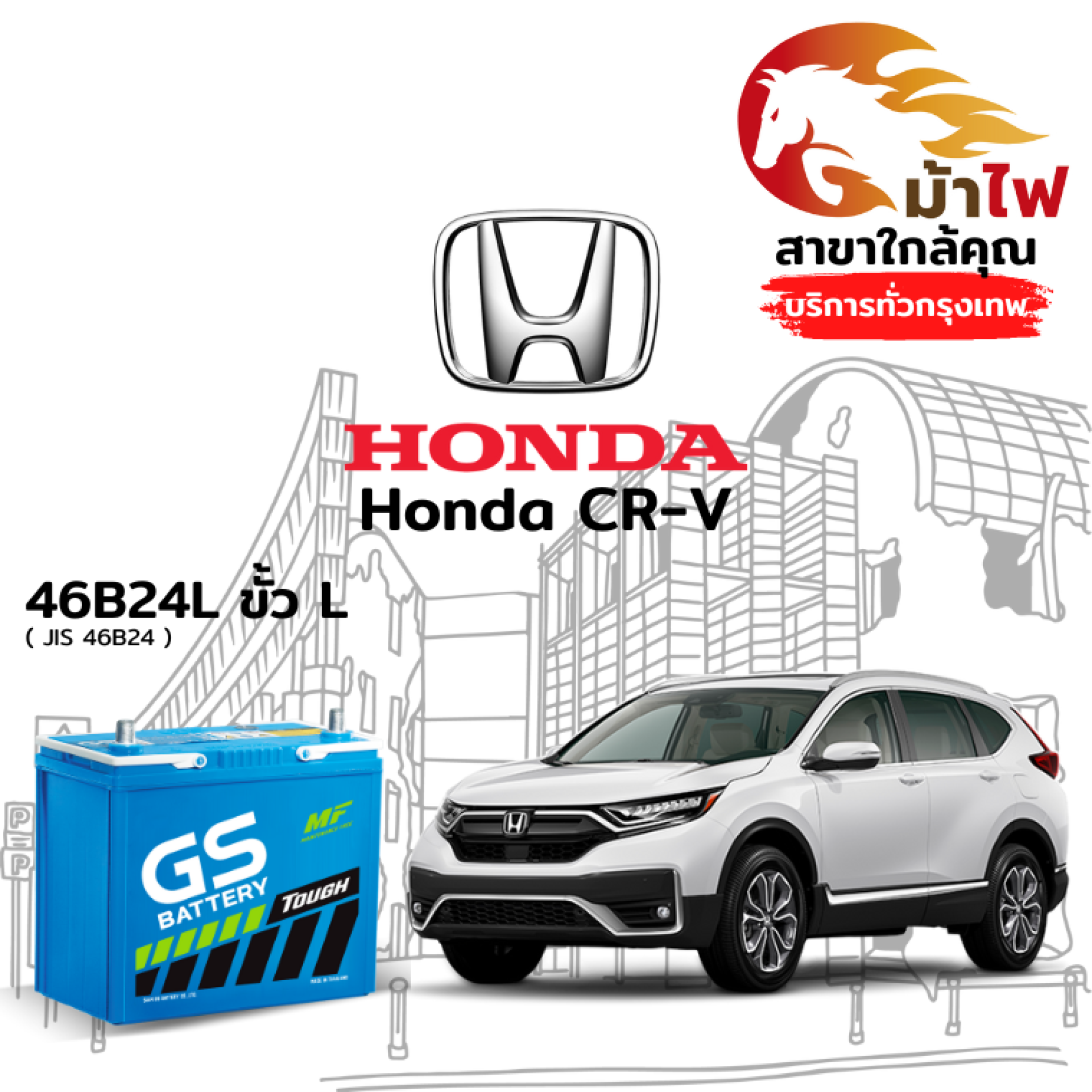 ร้านม้าไฟ ขอเสนอ แบตเตอรี่ Honda CR-V สำหรับการเปลี่ยนทดแทน ดังนี้