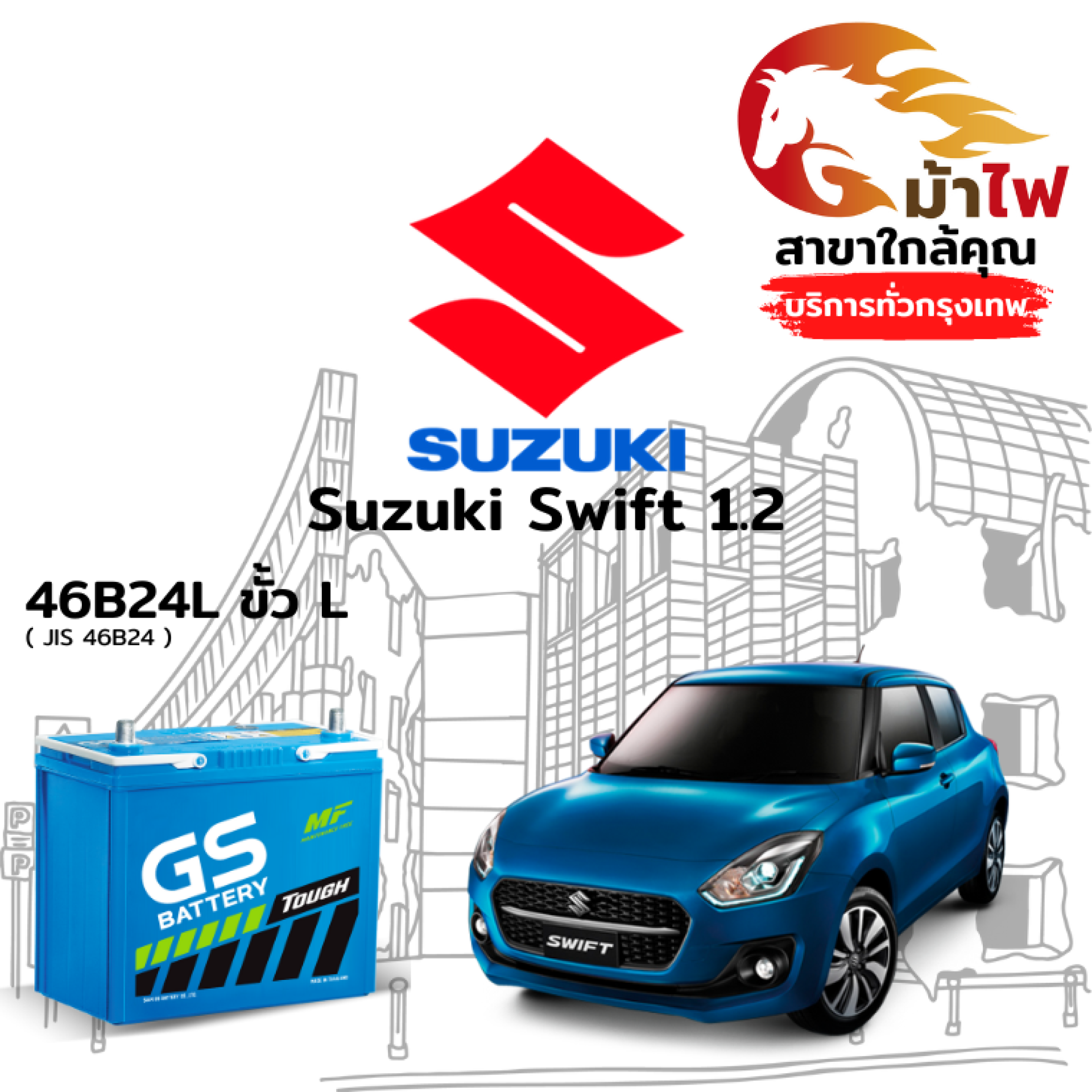 ม้าไฟ-แบตเตอรี่รถยนต์ ซูซูกิ สวิฟท์ 1.2 (Suzuki Swift 1.2)