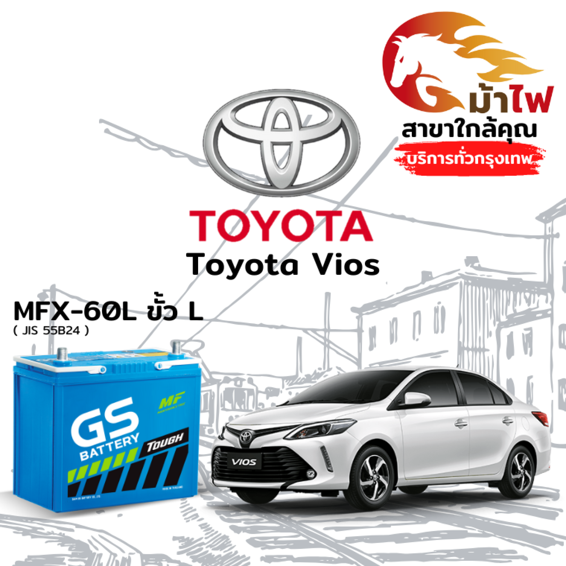 ม้าไฟ-แบตเตอรี่รถยนต์ โตโยต้า วีออส (Toyota Vios)