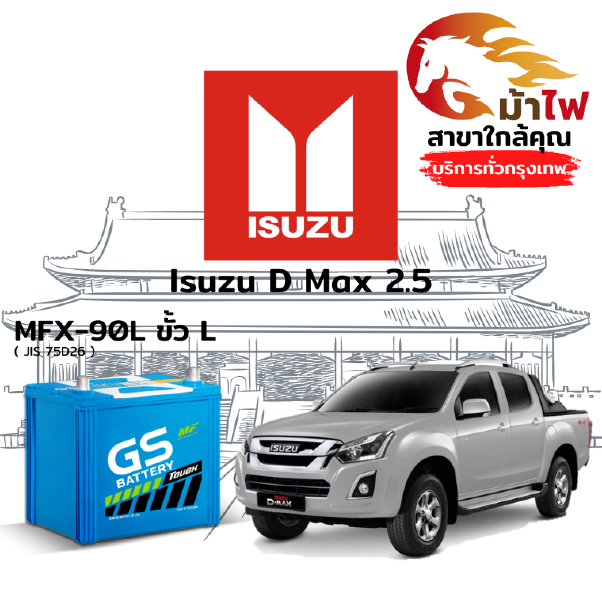 ม้าไฟ-แบตเตอรี่รถยนต์ อิซูซุ ดีแม็กซ์ 2.5 (Isuzu D Max 2.5)