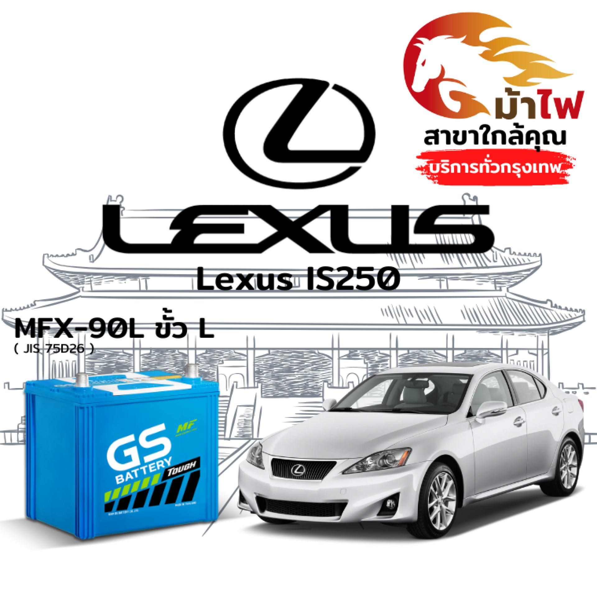 ร้านม้าไฟ ขอเสนอ แบตเตอรี่ Lexus IS250 สำหรับการเปลี่ยนทดแทน ดังนี้