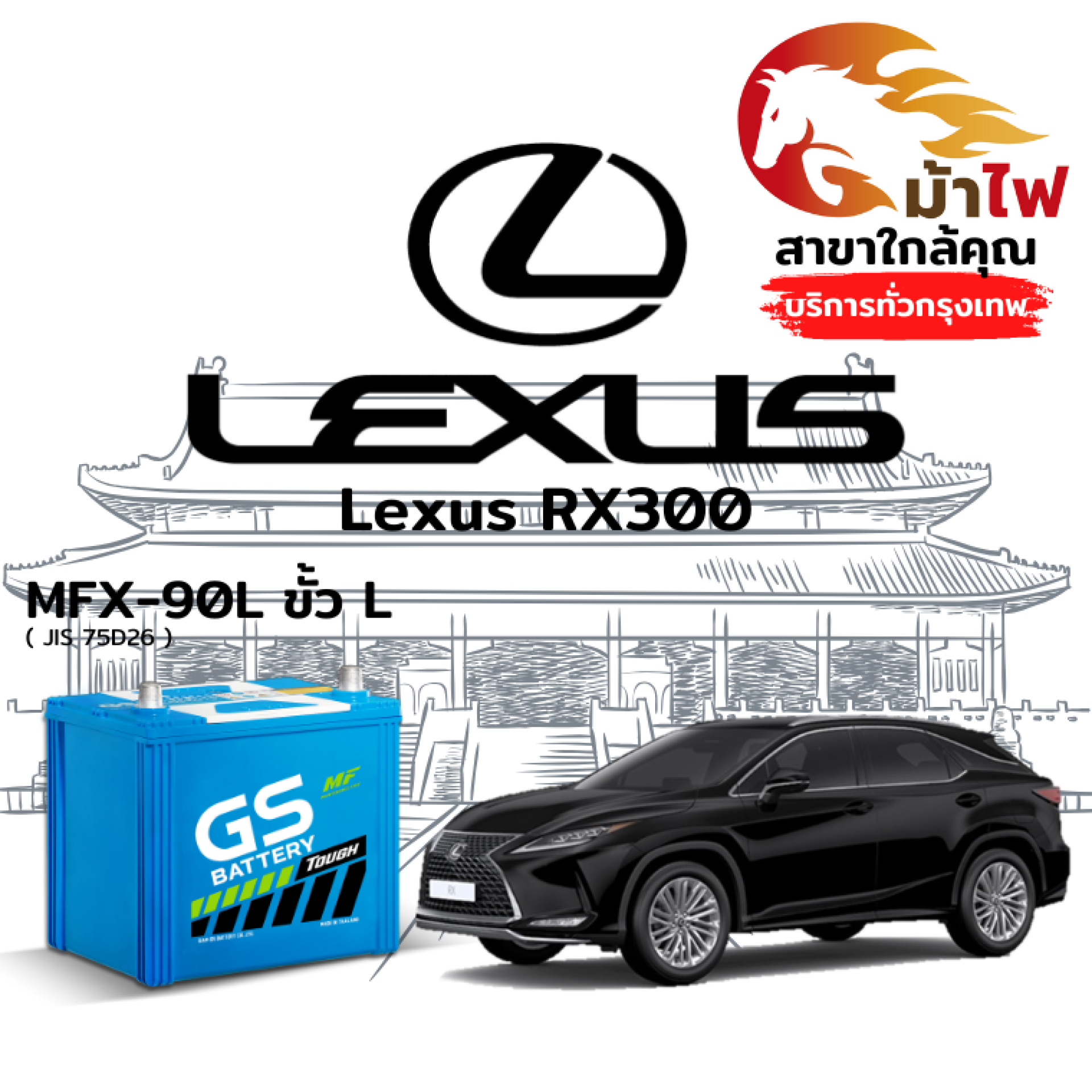 ม้าไฟ-แบตเตอรี่รถยนต์ เล็กซัส อาร์เอ็กซ์300 (Lexus RX300)