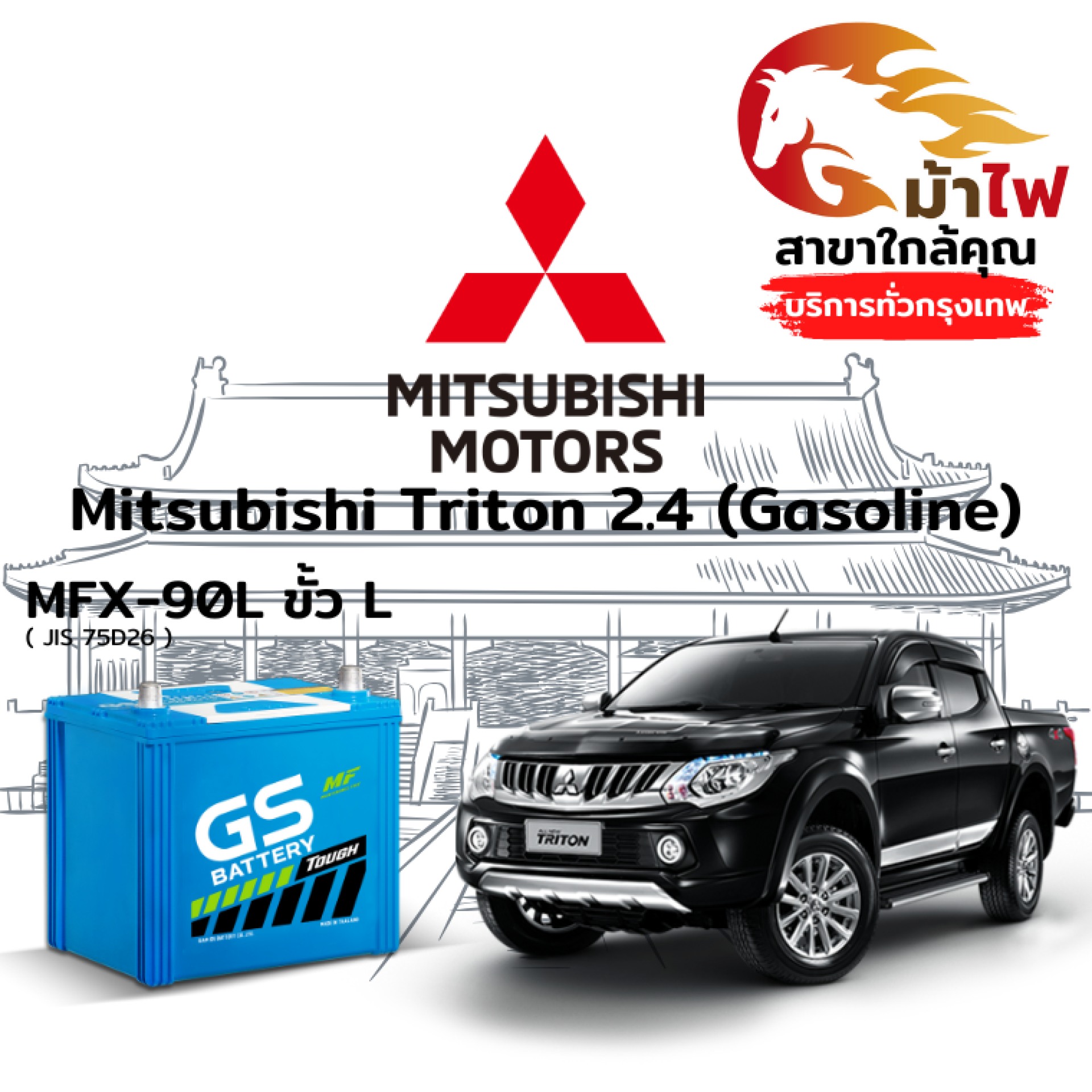 ม้าไฟ-แบตเตอรี่รถยนต์ มิตซูบิชิ ไทรทัน 2.4 (Mitsubishi Triton 2.4(Gasoline))