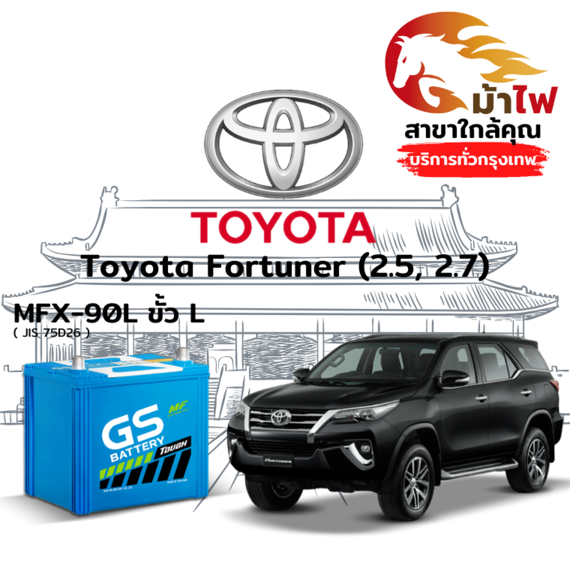 ม้าไฟ-แบตเตอรี่รถยนต์ โตโยต้า ฟอร์จูนเนอร์ (Toyota Fortuner (2.5, 2.7))