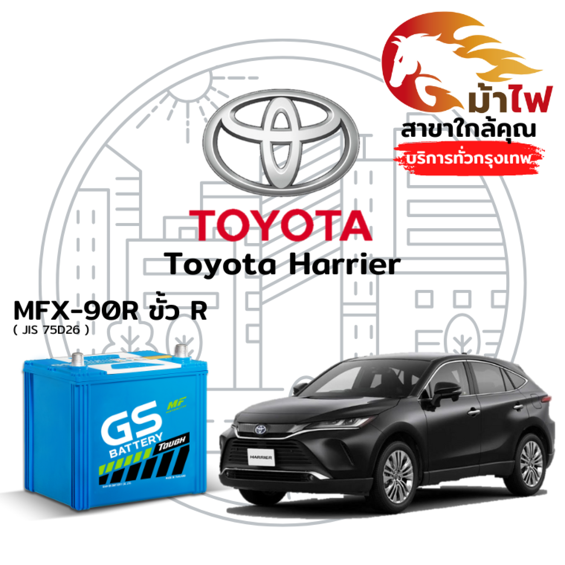 ร้านม้าไฟ ขอเสนอ แบตเตอรี่ Toyota Harrier สำหรับการเปลี่ยนทดแทน ดังนี้