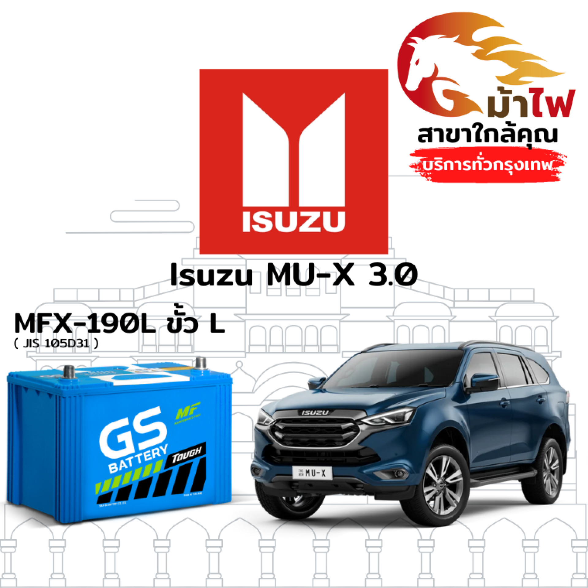 ม้าไฟ-แบตเตอรี่รถยนต์ อิซูซุ มิว X 3.0 (Isuzu MU-X 3.0)