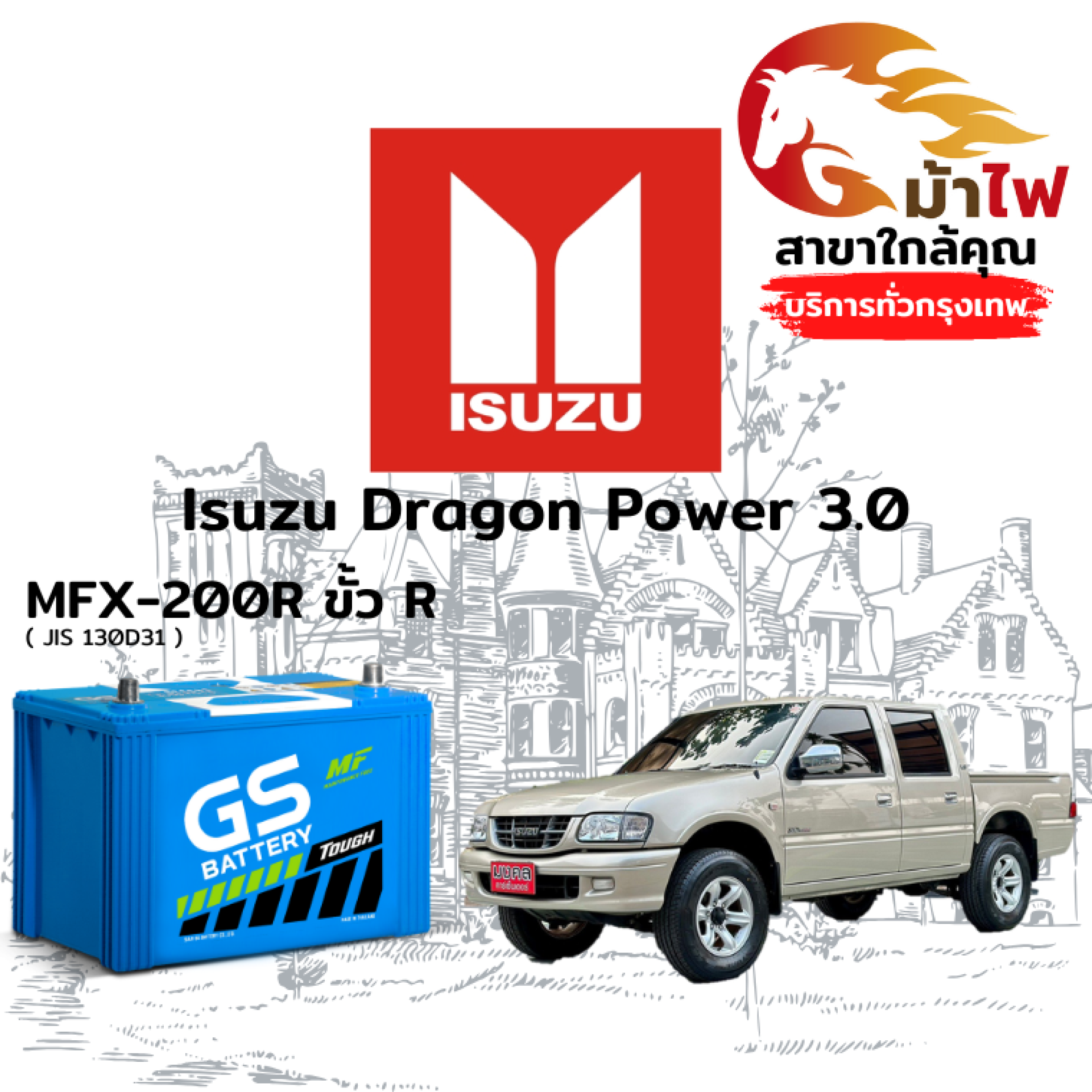 ม้าไฟ-แบตเตอรี่รถยนต์ อิซูซุ ดราก้อน พาวเวอร์ 3.0 (Isuzu Dragon Power 3.0)