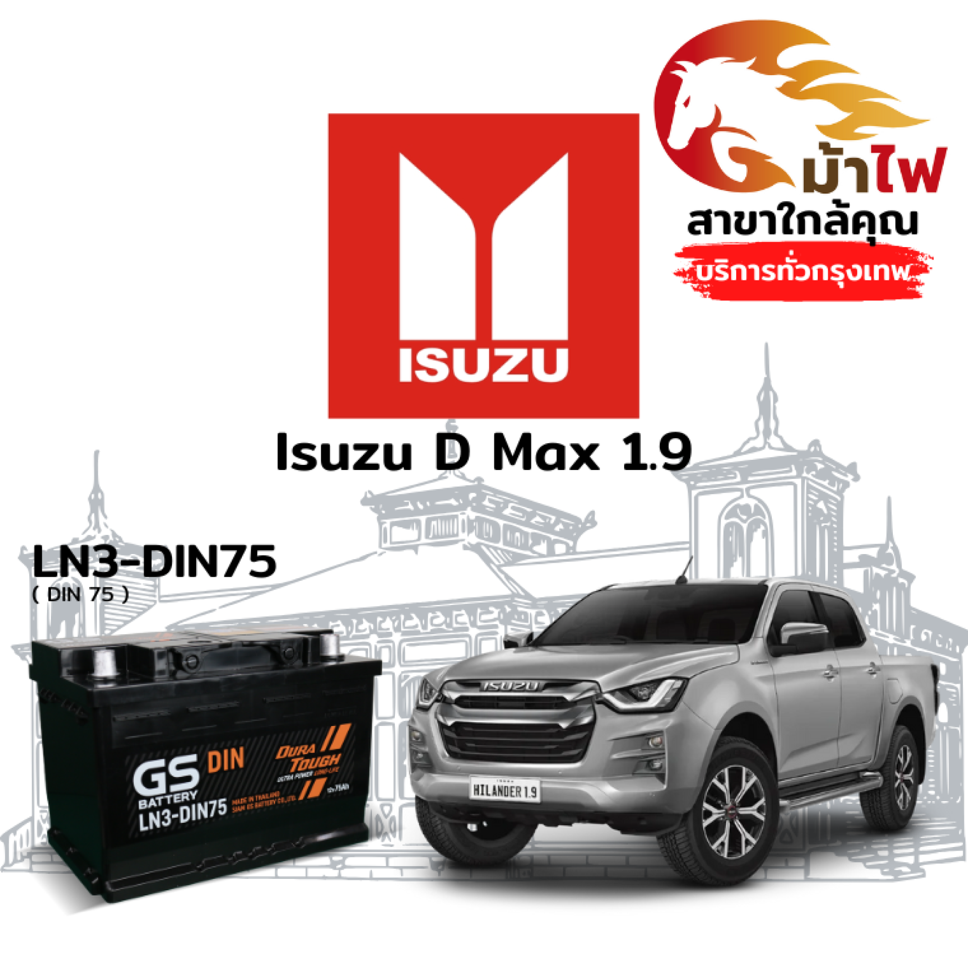 ม้าไฟ-แบตเตอรี่รถยนต์ อิซูซุ ดีแม็กซ์ 1.9 (Isuzu D Max 1.9)