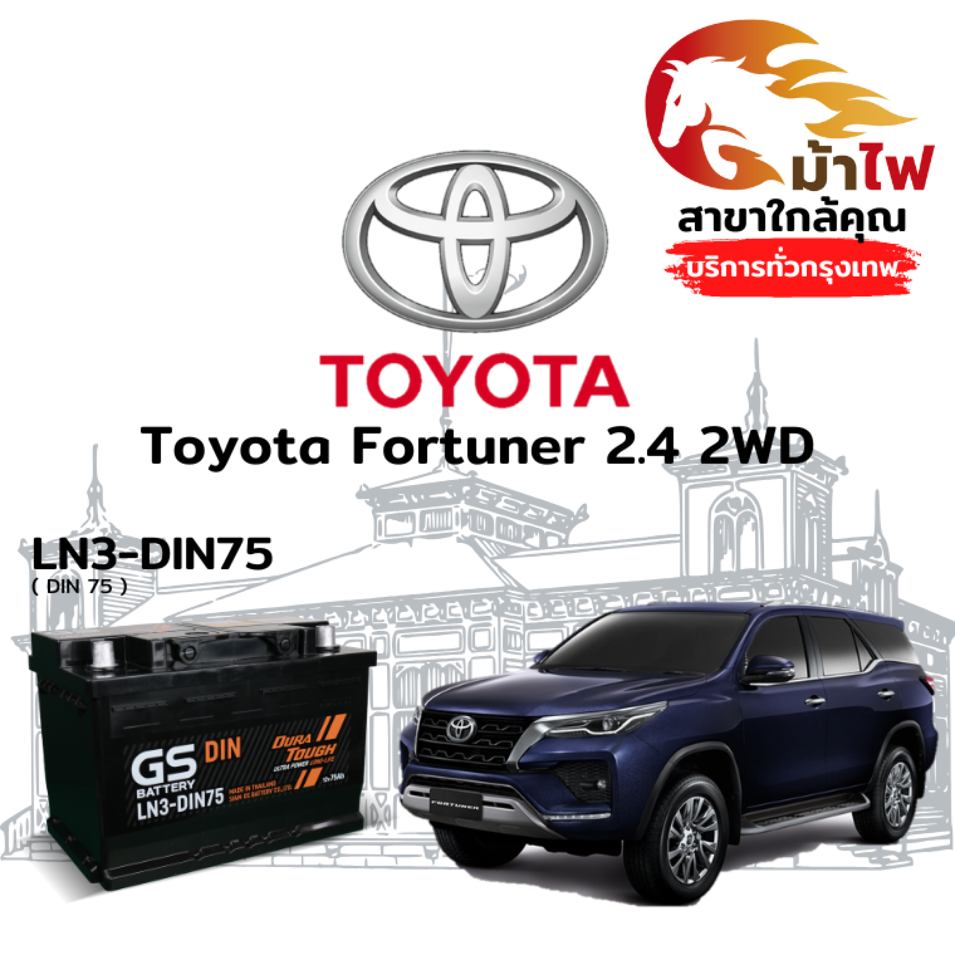 ม้าไฟ-แบตเตอรี่รถยนต์ โตโยต้า ฟอร์จูนเนอร์ (Toyota Fortuner 2.4 2WD)