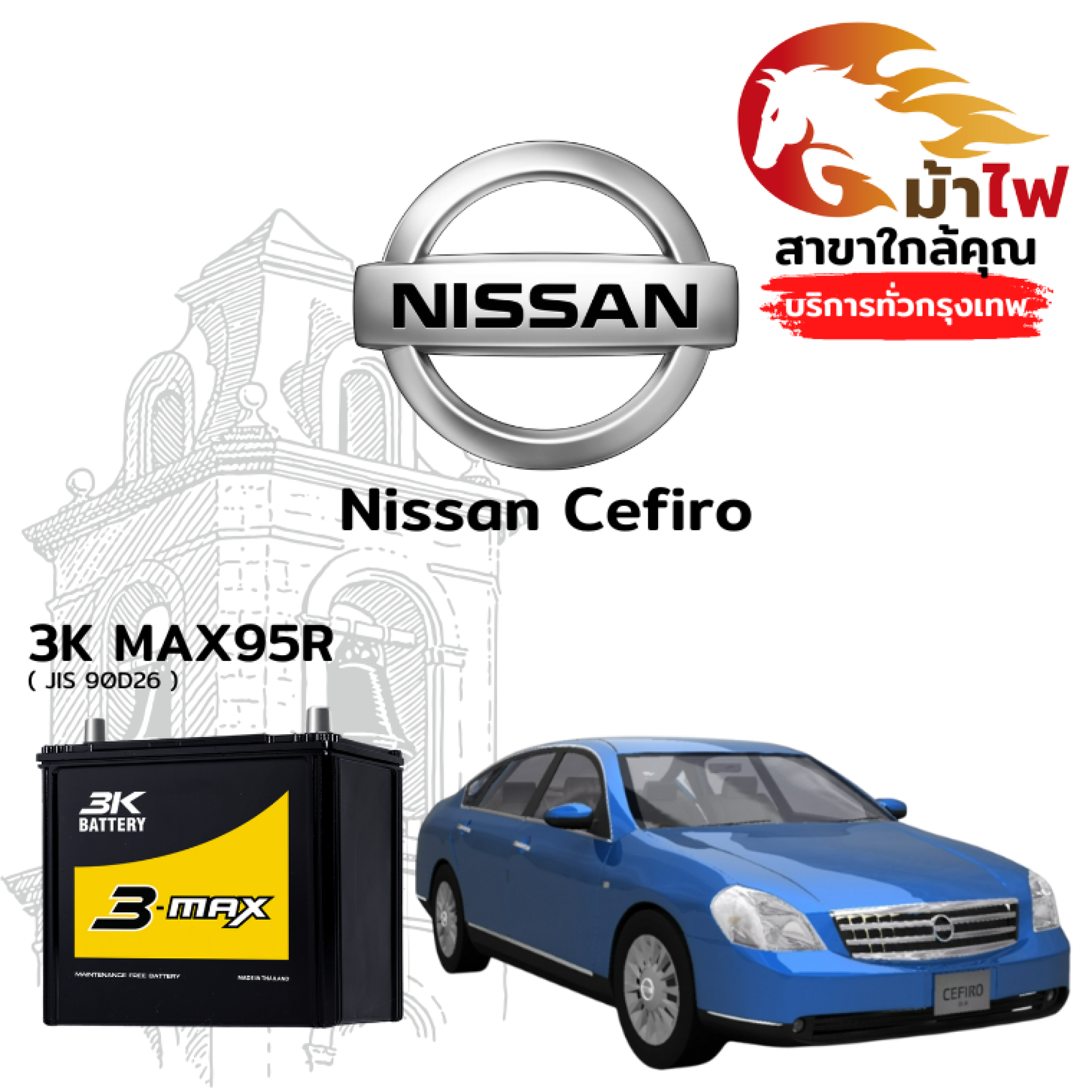 ม้าไฟ-แบตเตอรี่รถยนต์ นิสสัน เซฟิโร่ (Nissan Cefiro)