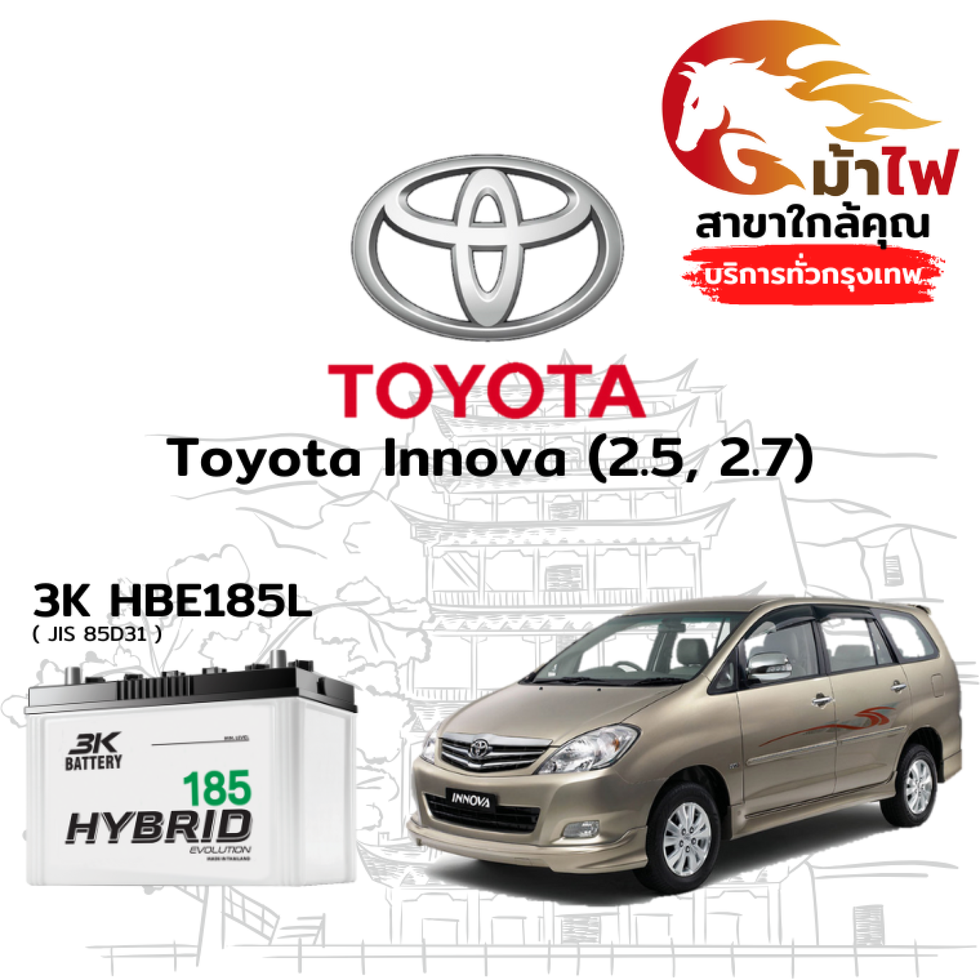 ม้าไฟ-แบตเตอรี่รถยนต์ โตโยต้า อินโนวา (Toyota Innova (2.5, 2.7))