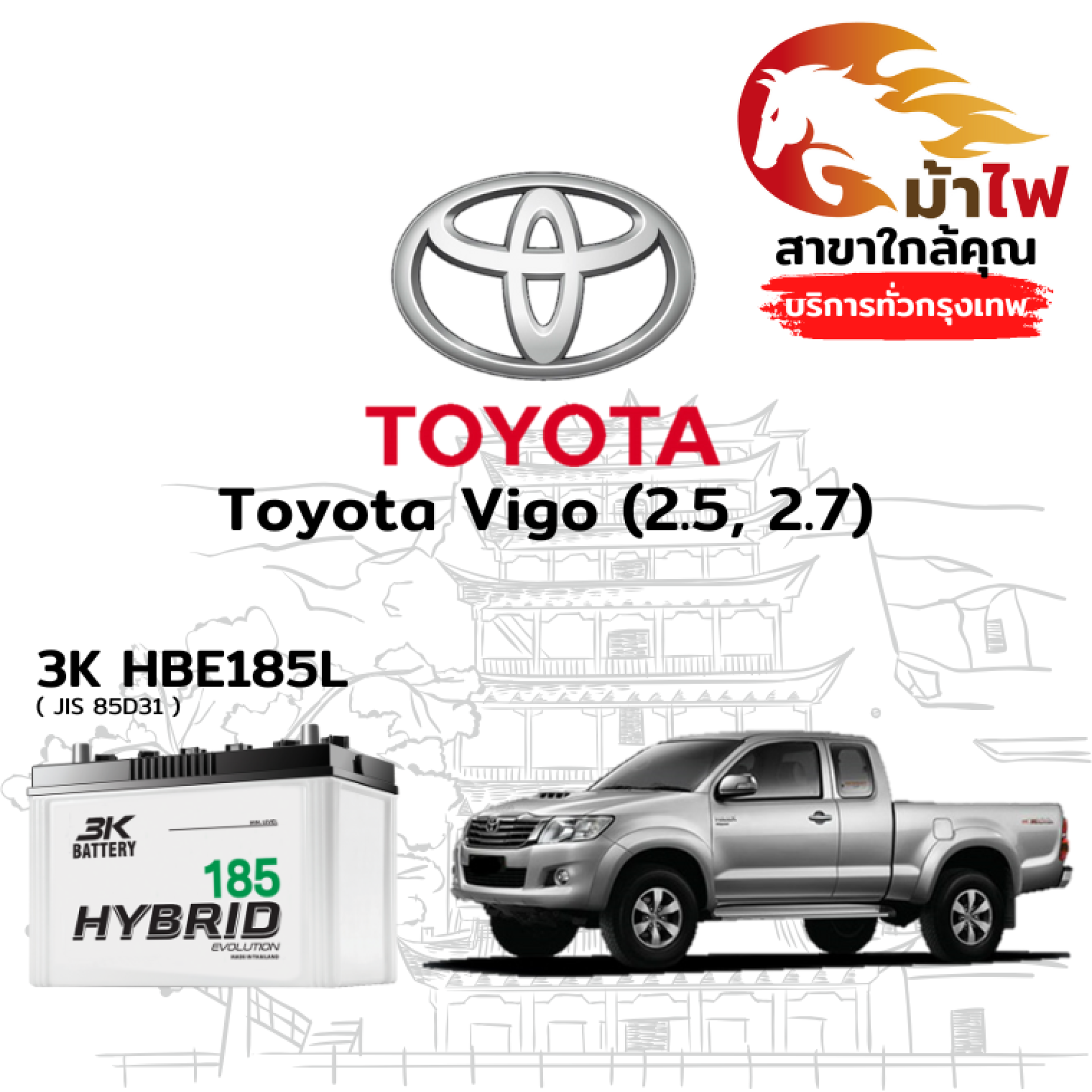 ร้านม้าไฟ ขอเสนอ แบตเตอรี่ Toyota Vigo (2.5, 2.7) สำหรับการเปลี่ยนทดแทน ดังนี้