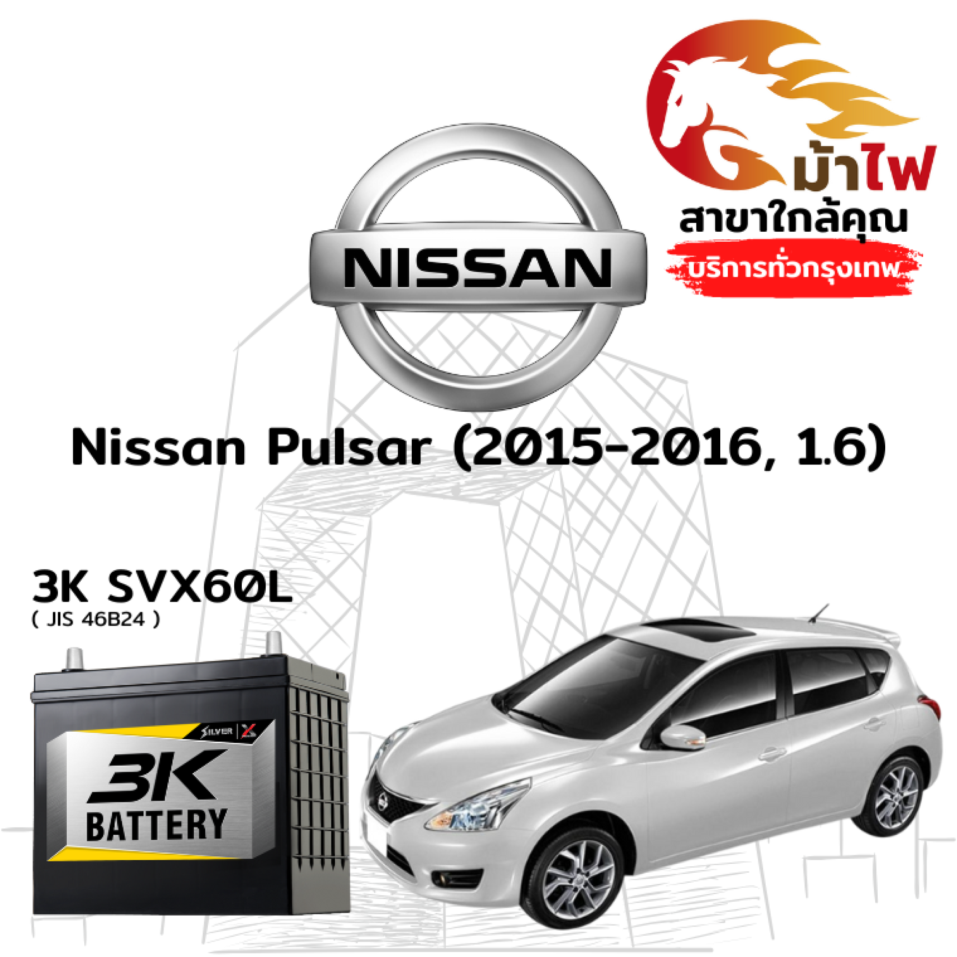 ร้านม้าไฟ ขอเสนอ แบตเตอรี่ Nissan Pulsar (2015-2016, 1.6) สำหรับการเปลี่ยนทดแทน ดังนี้