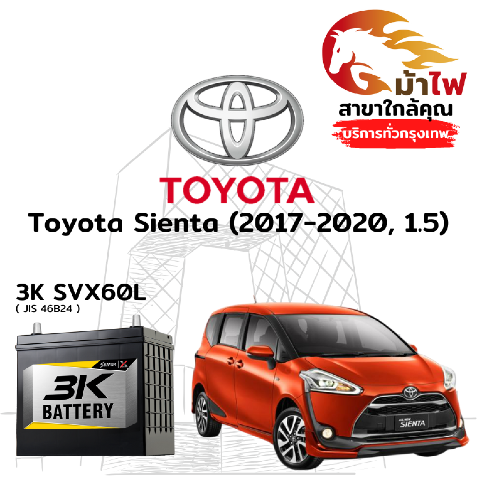 ม้าไฟ-แบตเตอรี่รถยนต์ โตโยต้า เซียนต้า (Toyota Sienta (2017-2020, 1.5))