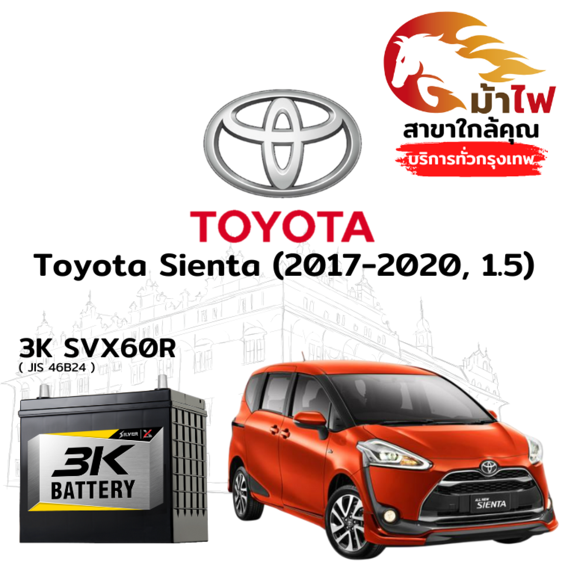 ม้าไฟ-แบตเตอรี่รถยนต์ โตโยต้า เซียนต้า (Toyota Sienta (2017-2020, 1.5))