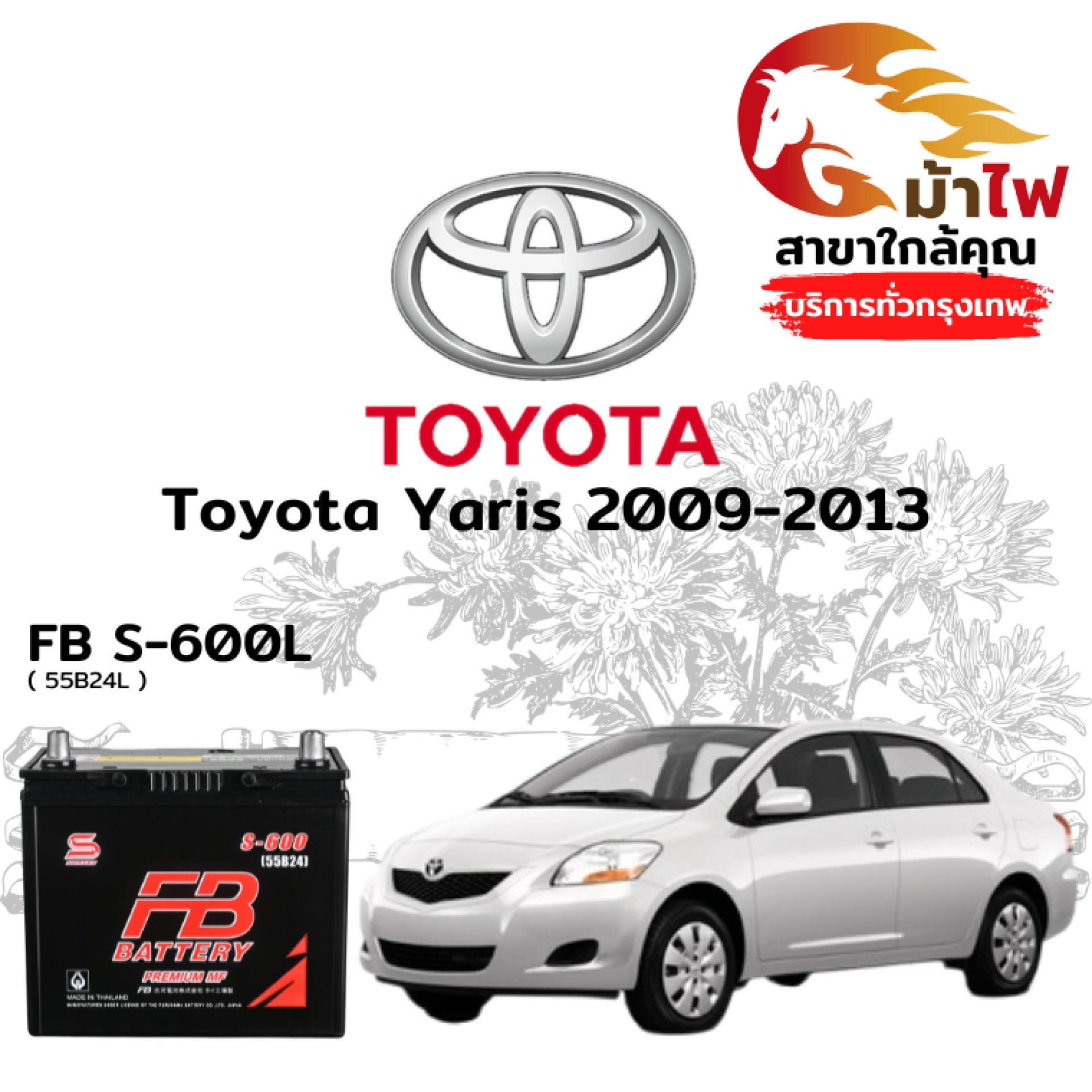 ร้านม้าไฟ ขอเสนอ แบตเตอรี่ Toyota Yaris 2009-2013 สำหรับการเปลี่ยนทดแทน ดังนี้