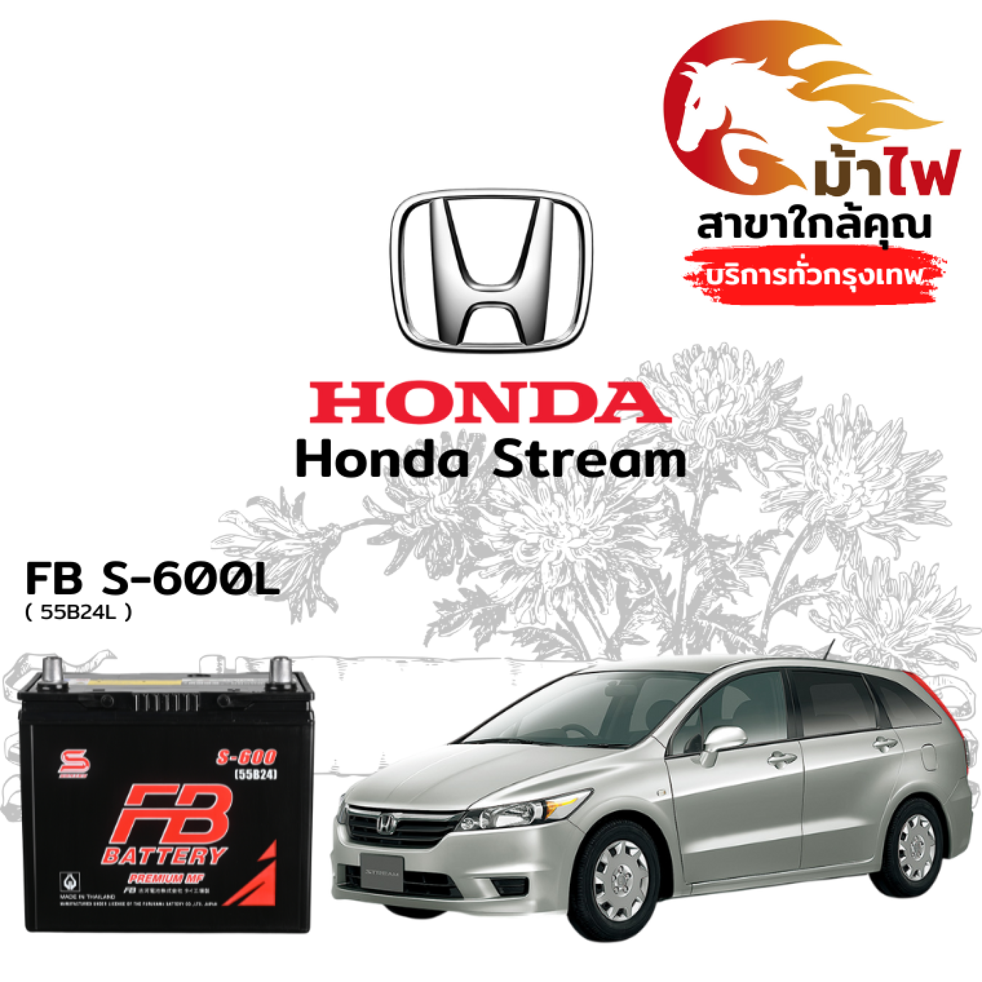 ร้านม้าไฟ ขอเสนอ แบตเตอรี่ Honda Stream สำหรับการเปลี่ยนทดแทน ดังนี้
