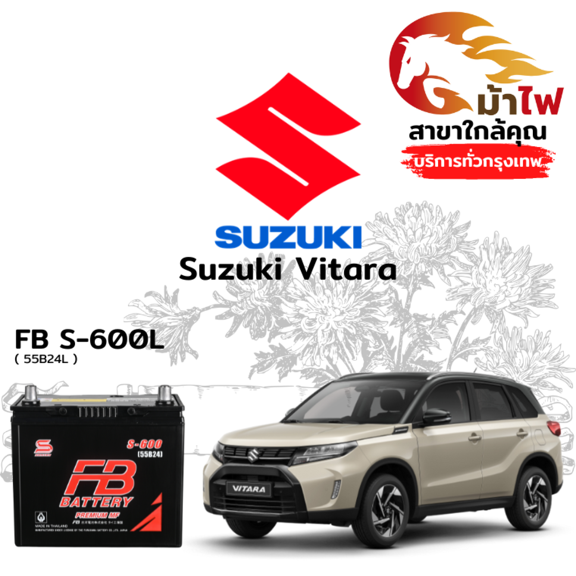 ร้านม้าไฟ ขอเสนอ แบตเตอรี่ Suzuki Vitara สำหรับการเปลี่ยนทดแทน ดังนี้