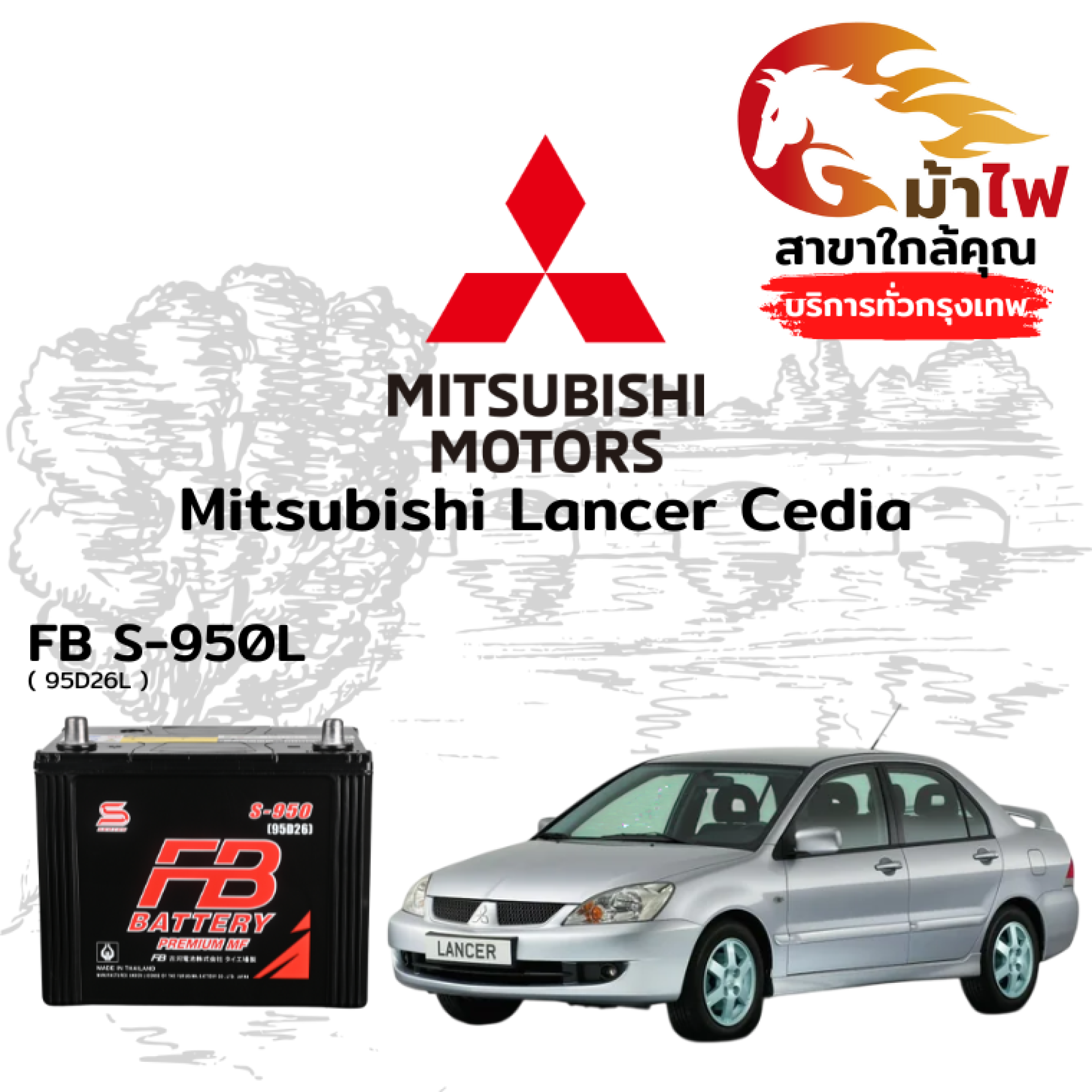 ม้าไฟ-แบตเตอรี่รถยนต์ มิตซูบิชิ แลนเซอร์ ซีเดีย (Mitsubishi Lancer Cedia)