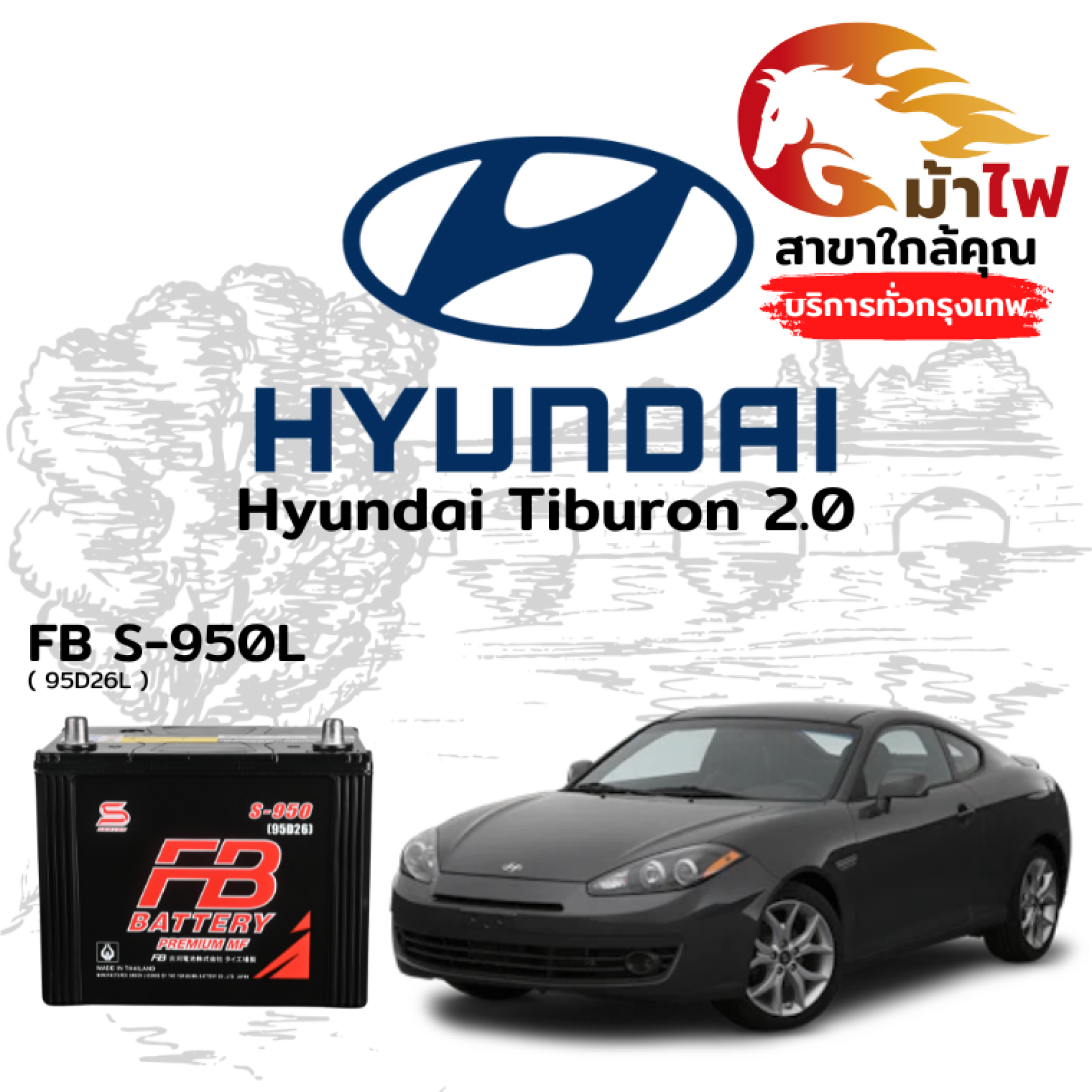ร้านม้าไฟ ขอเสนอ แบตเตอรี่ Hyundai Tiburon 2.0 สำหรับการเปลี่ยนทดแทน ดังนี้