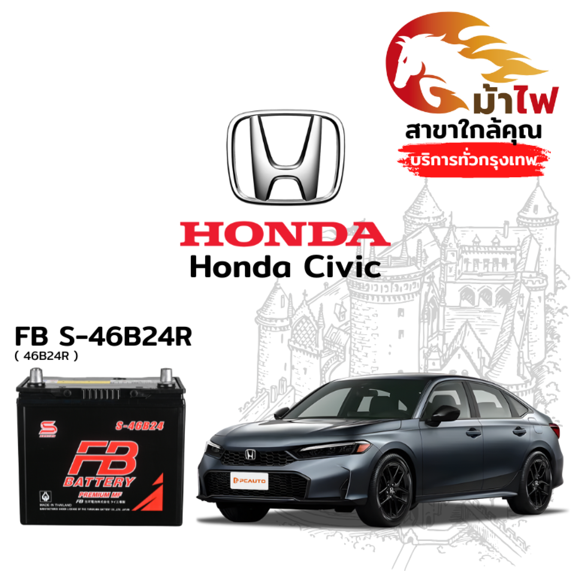 ม้าไฟ-แบตเตอรี่รถยนต์ ฮอนด้า ซีวิค (Honda Civic)