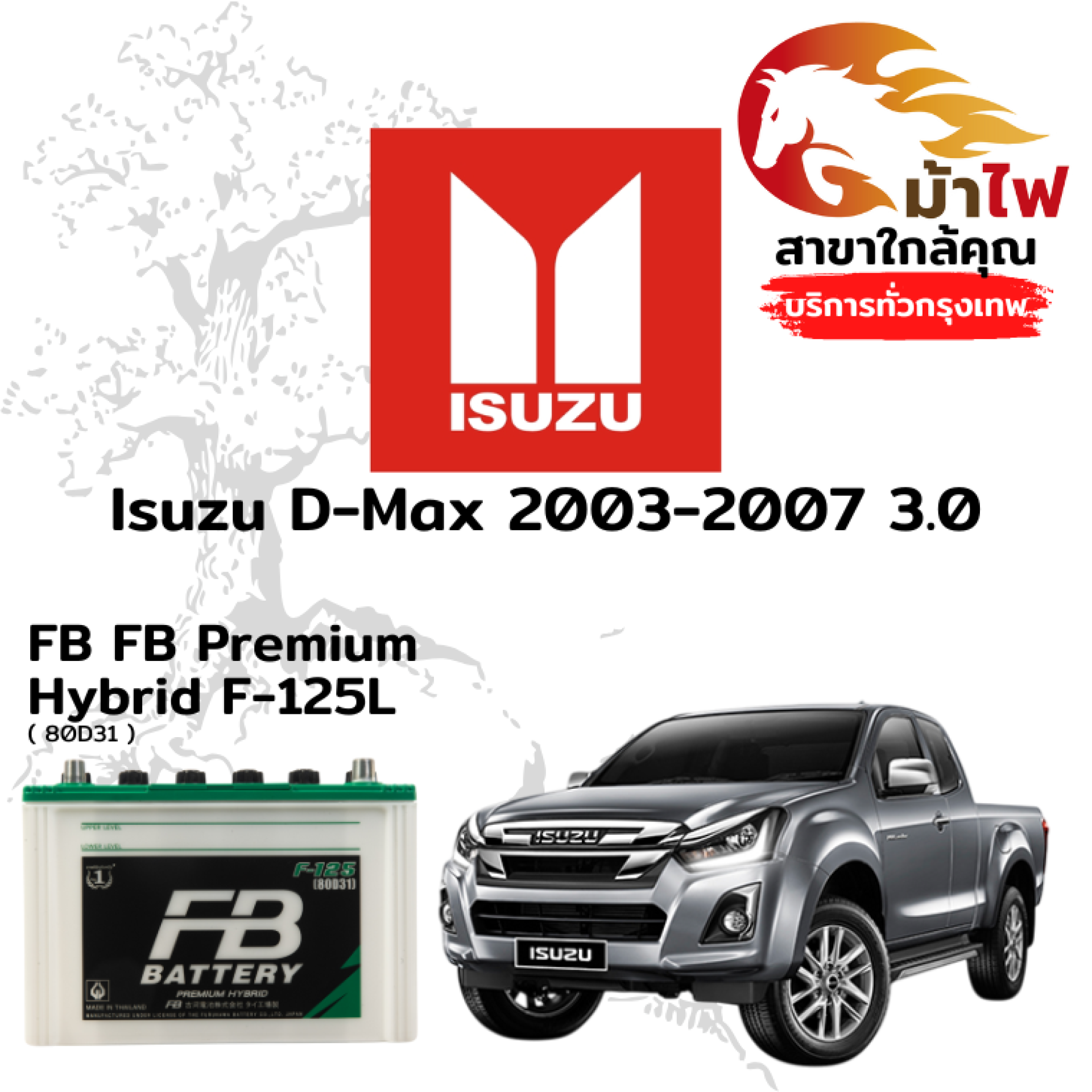 ร้านม้าไฟ ขอเสนอ แบตเตอรี่ Isuzu D-Max 2003-2007 3.0 สำหรับการเปลี่ยนทดแทน ดังนี้