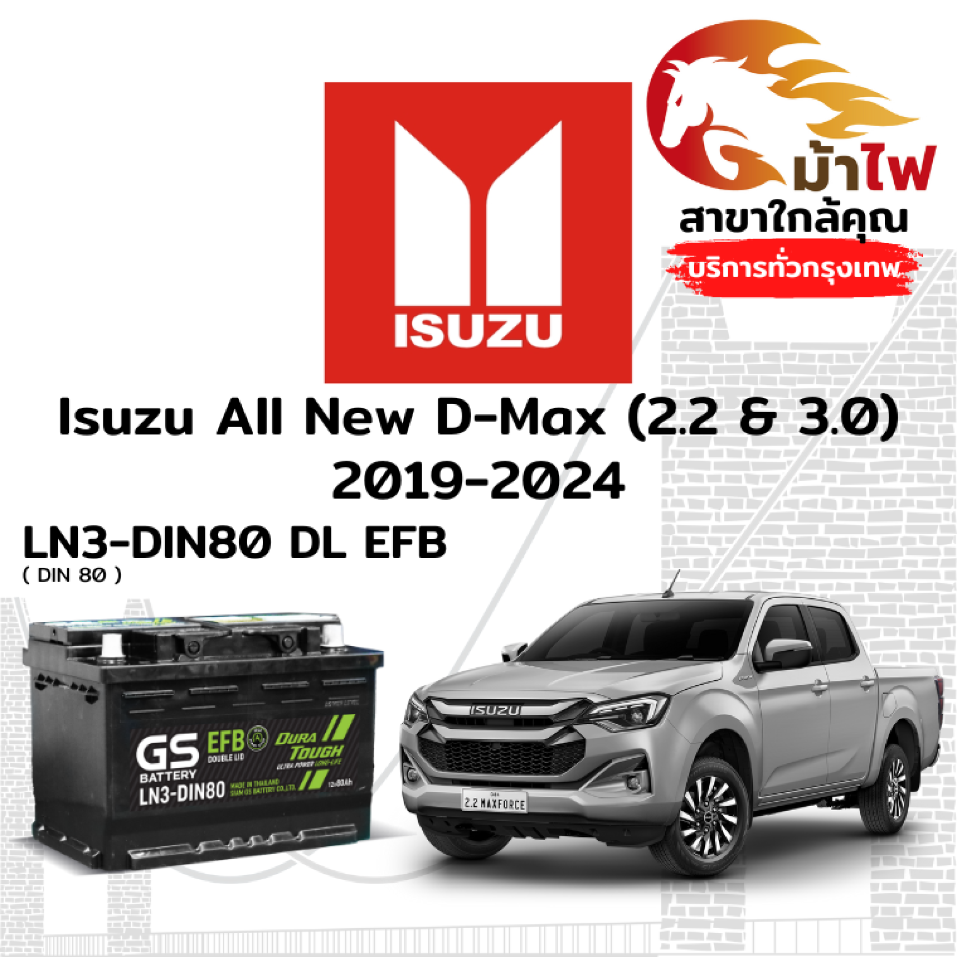 ม้าไฟ-แบตเตอรี่รถยนต์ อิซูซุ ออนิว ดีแม็กซ์ (Isuzu All New D-Max (2.2 & 3.0) 2019-2024)